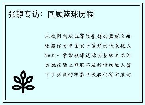 张静,作为中国女子篮球的代表性人物之一,常常被球迷称为“坚韧之花”,因为她在场上那股不屈的拼劲,给人留下了深刻的印象。今天,我们有幸采访到她,深入了解她的篮球历程。